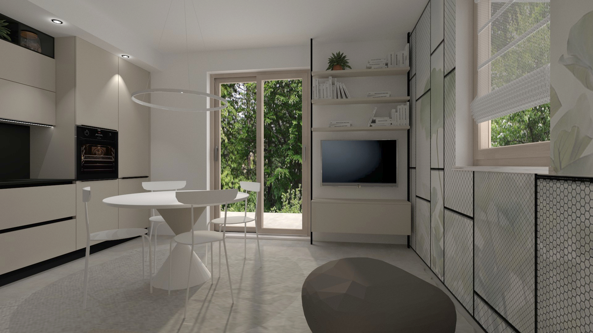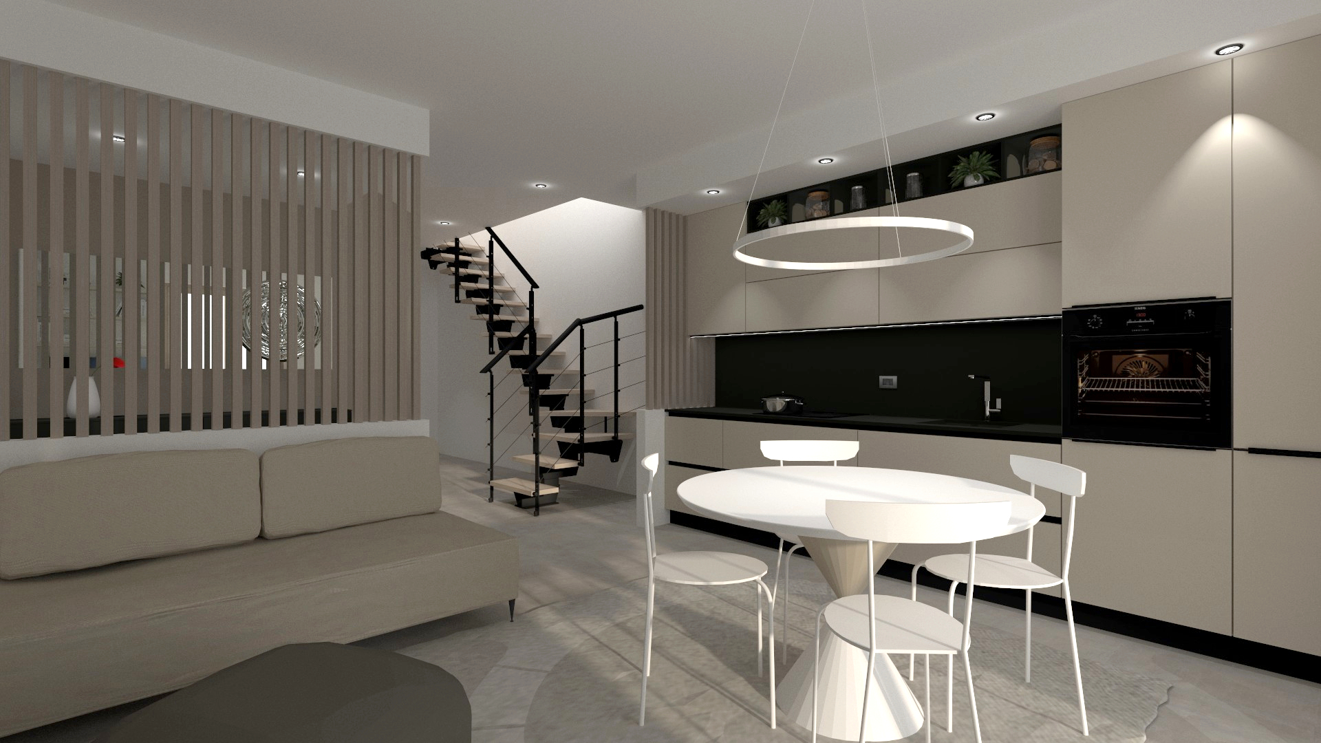 Cucina lineare su misura dal design contemporaneo, caratterizzata da linee essenziali, superfici continue e una palette neutra che valorizza la luce naturale. Il progetto integra funzionalità e cura del dettaglio, con soluzioni pensate per un utilizzo quotidiano.